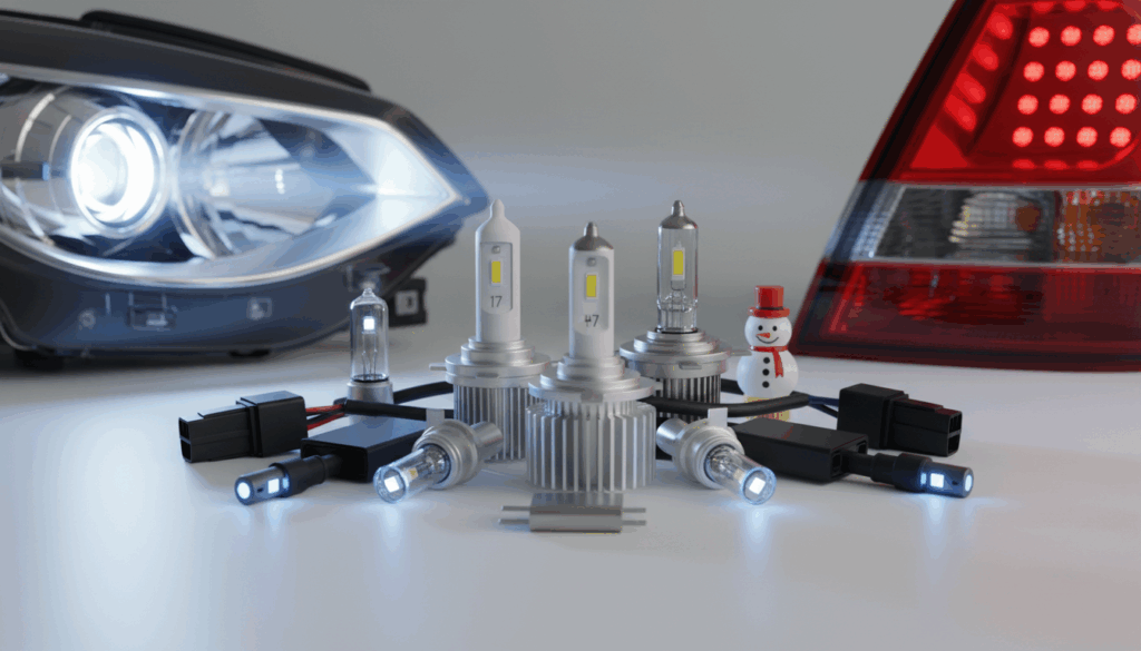 Typiske produkter inkluderer hovedlygter i pæreformer som H7, H1, H4 og HB4, LED-pærer og xenon. Der findes også CANbus-adaptere og snydemodstande til moderne biler, så LED og HID fungerer uden fejlkoder.