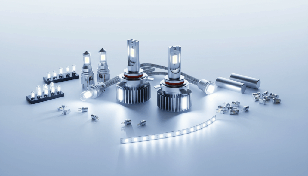 LED Pærer dækker moderne belysningsløsninger til biler og hjem og inkluderer alt fra små kabine- og instrumentpærer til kraftfulde forlygtepærer. I denne kategori finder du pærer til forlygter, baglygter, blinklys, instrumenter og kabinebelysning samt praktiske reservepærer. De kendetegnes ved lavt energiforbrug, lang levetid og skarpt hvidt lys, ofte i farvetemperaturer omkring 6000K. Mange modeller er CANbus-kompatible og passer til 12V og 24V-systemer samt forskellige fatninger som BA15S, BAY15D, P21W og mere.
