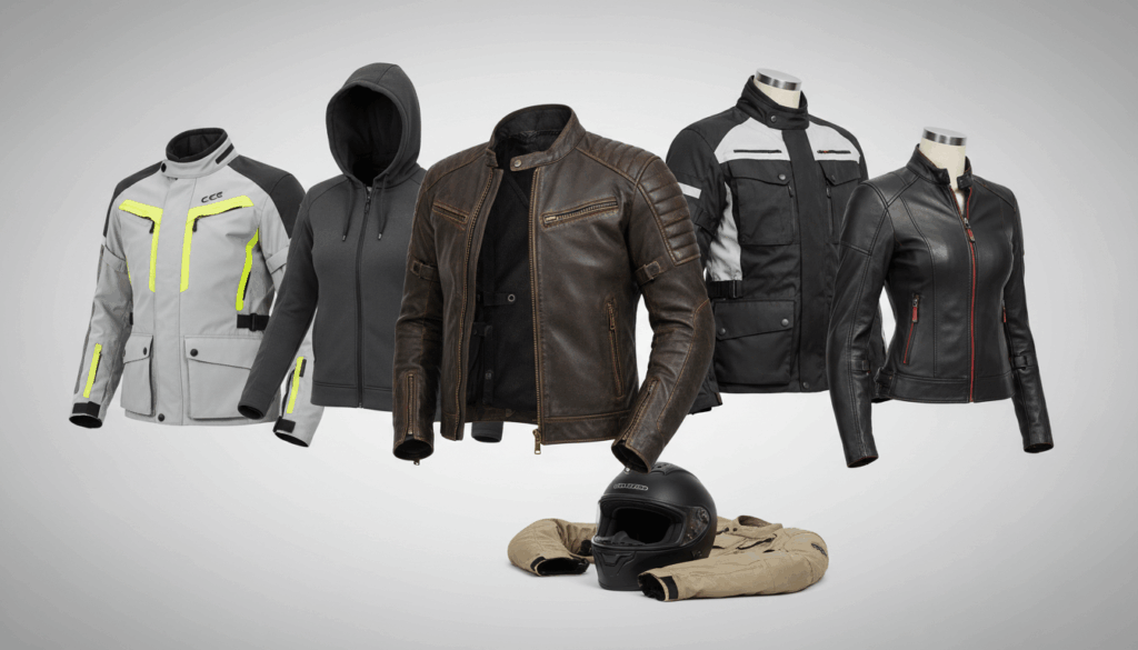 Anvendelsen spænder fra bykørsel og pendling til lange touring-ture og weekendudflugter. Variationer inkluderer lette tekstiljakker til sommer, klassiske læderjakker og hybride modeller, der balancerer bevægelighed og beskyttelse.