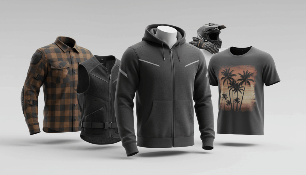 Motorcykelskjorter og hættetrøjer er en alsidig del af biker-garderoben. Her finder du motorcykelskjorter i bomuld eller blandinger med tryk, der giver god åndbarhed og holdbarhed. Hættetrøjer tilfører varme og komfort til kølige ture og hverdagslook, ofte med praktiske detaljer som lynlås, snit og reflekterende elementer. Variationer spænder fra korte og lange ærmer til hoodies og lette enduro-veste med beskyttende eller tætsluttende detaljer. Når du vælger, vurder pasform, materiale, svedtransport, holdbarhed og eventuelle sikkerhedsfeatures. Der findes også modeller med beskyttende paneler og synlige detaljer i flere varianter. Se udvalget hos Moto Lounge og Kajs MC.