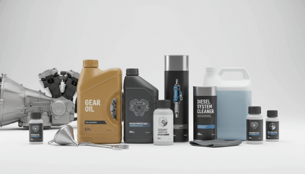 Pleje og vedligeholdelse omfatter produkter til bil og motorcykel, der beskytter motor, gear og kølesystem samt brændstof- og dieselsystemer. I kategorien finder du gearolie og motorolie i forskellige klassifikationer (GL5, DSG), samt additiver, rensemidler og korrosionsbeskyttelse. Variationerne spænder fra små 80 ml- og 125 ml-flasker til større 1–5 liter beholdere og inkluderer keramiske additiver og renseprodukter til motor og gearkasse. Produkterne hører til både personbiler og motorcykler og dækker særlige vedligeholdelsesbehov og forebyggende pleje.