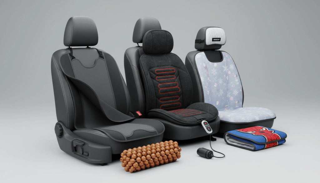 Denne kategori samler to hovedtyper af biltilbehør, der forbedrer komfort og beskytter bilens interiør: sædevarme og sædebeskyttere. Opvarmede sædepuder tilsluttes bilens 12V og giver varme i flere niveauer. Sædebeskyttere beskytter mod pletter og slid og fås i vandtætte eller åndbare materialer med skridsikker underside. Der findes universale modeller samt modeller til specifikke bilmodeller. Dækbutikken.