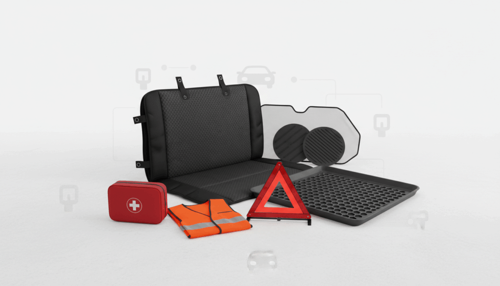 Sikkerhed og komfort i bilen handler om at beskytte passagerer og kæledyr og samtidig gøre kørslen behagelig. I denne kategori finder du sikkerhedsudstyr som førstehjælpskasser, advarselstrekant og reflekterende veste samt praktiske løsninger til bilens interiør: sædebeskyttelse, bagagerumsbeskyttelse og skridsikre måtter.